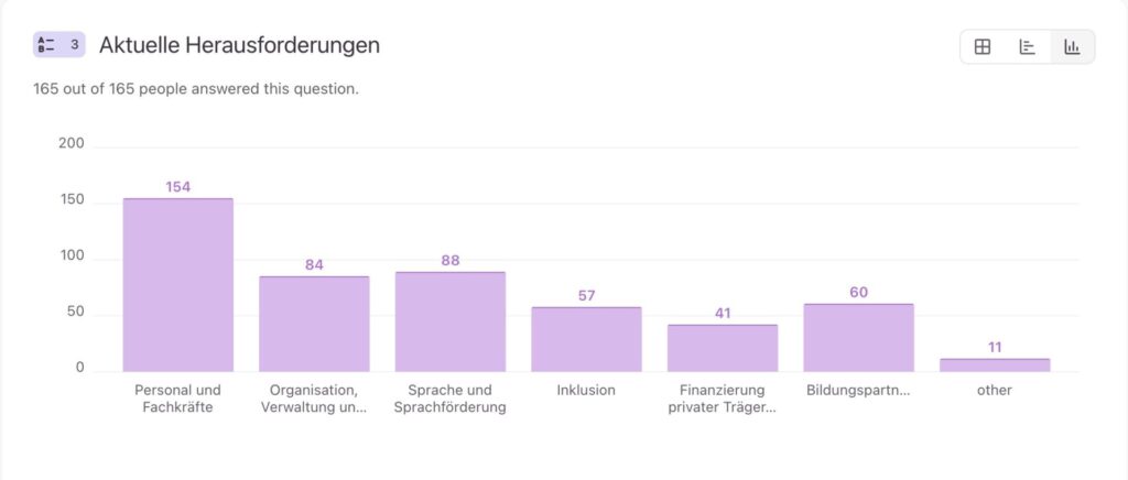Three main concerns were repeated in the free responses: more staff, better childcare ratios and a higher social status for early childhood education.