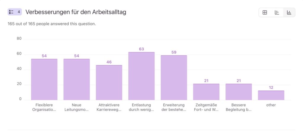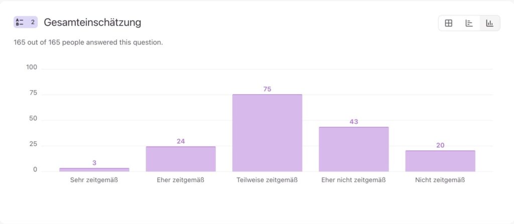 Following the speech, we sent out a survey to the participants, which included several practical assessment questions as well as an open question. Our main aim was to gather feedback from everyday life, pick up on the impulses from the speech and better understand where the participants currently see the greatest need for improvement. In this way, voices from different perspectives became visible and it became clear where the greatest need for action is currently seen.